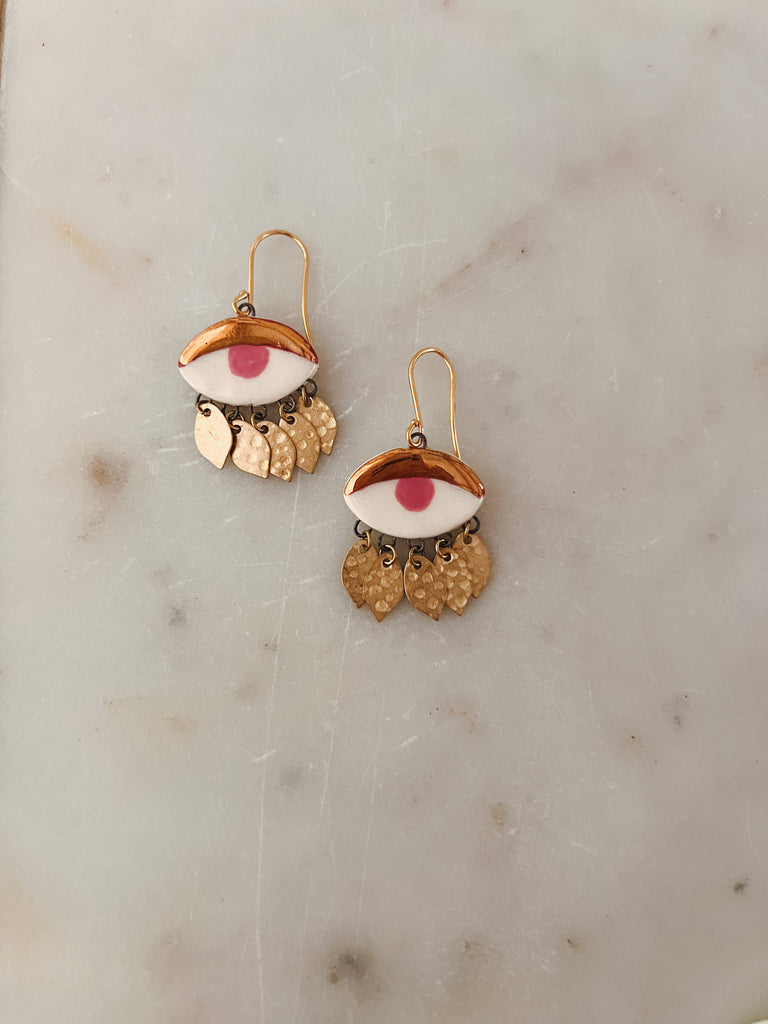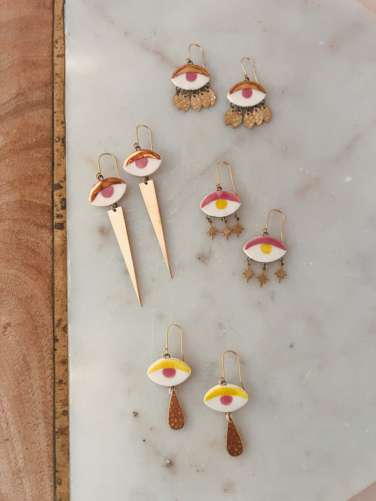 Yellow Lid + Pink Eye + Hammered Teardrop